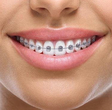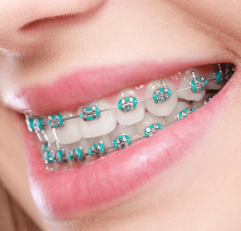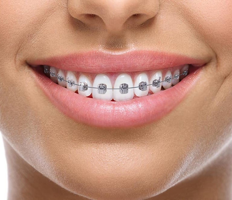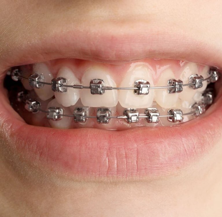 Traditional type of braces that have been used for decades to straighten teeth and correct bite issues. Conventional braces consist of metal brackets that are bonded to the teeth and connected by a metal wire. The wire is tightened periodically to gradually shift the teeth into their correct position.